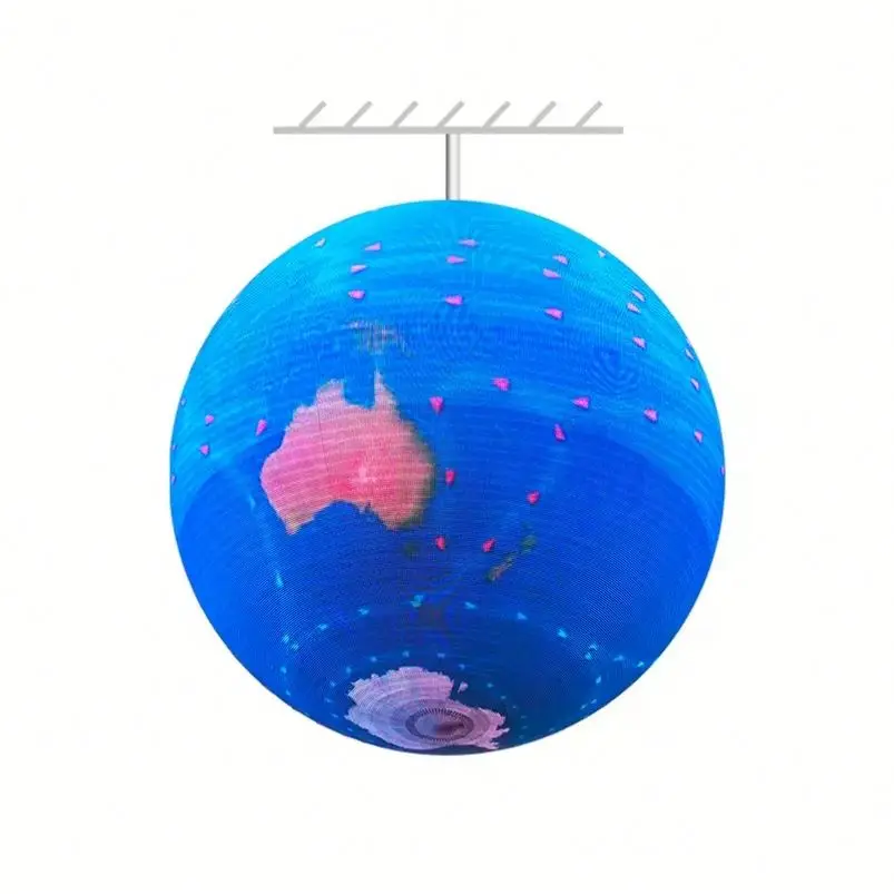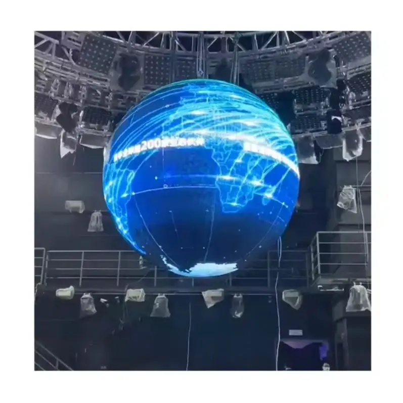 LED Sphere display (also known as LED ball display, Globe LED display or LED video ball) is a new design and creative type of LED screen product. Its shape is spherical and can provide a 360-degree viewing angle effect. It is different from the traditional LED display and has a unique 360-degree spherical appearance. Due to its unique design and visibility in any direction, it stands out among various LED displays.
