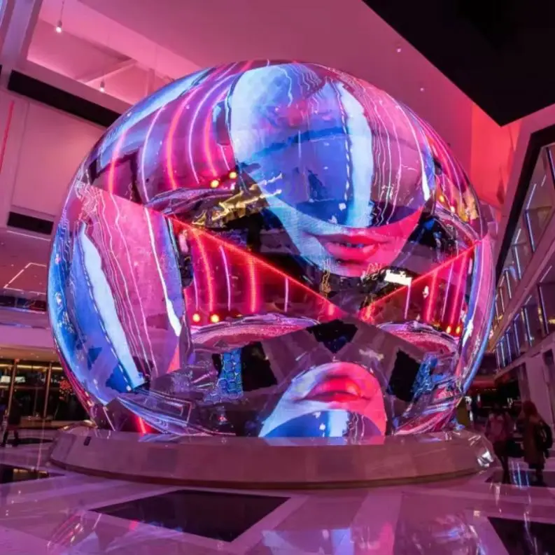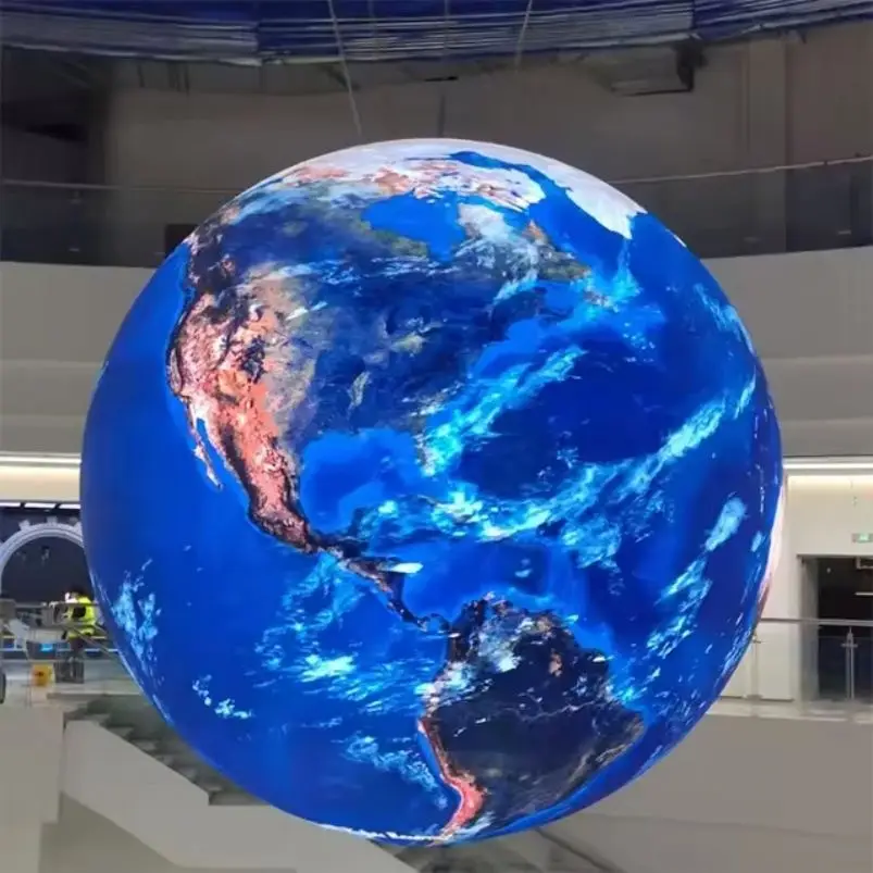 LED Sphere display (also known as LED ball display, Globe LED display or LED video ball) is a new design and creative type of LED screen product. Its shape is spherical and can provide a 360-degree viewing angle effect. It is different from the traditional LED display and has a unique 360-degree spherical appearance. Due to its unique design and visibility in any direction, it stands out among various LED displays.